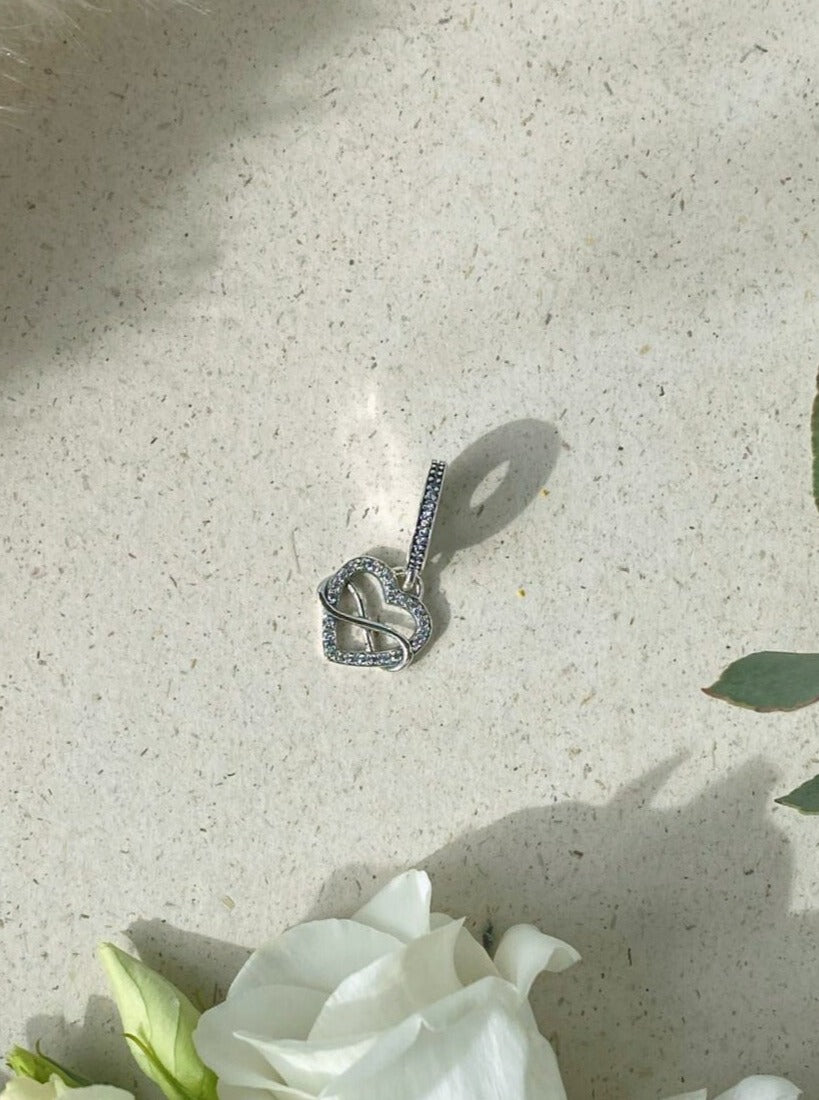 Charm Silber Kristall Anhänger mit Infinity Herz