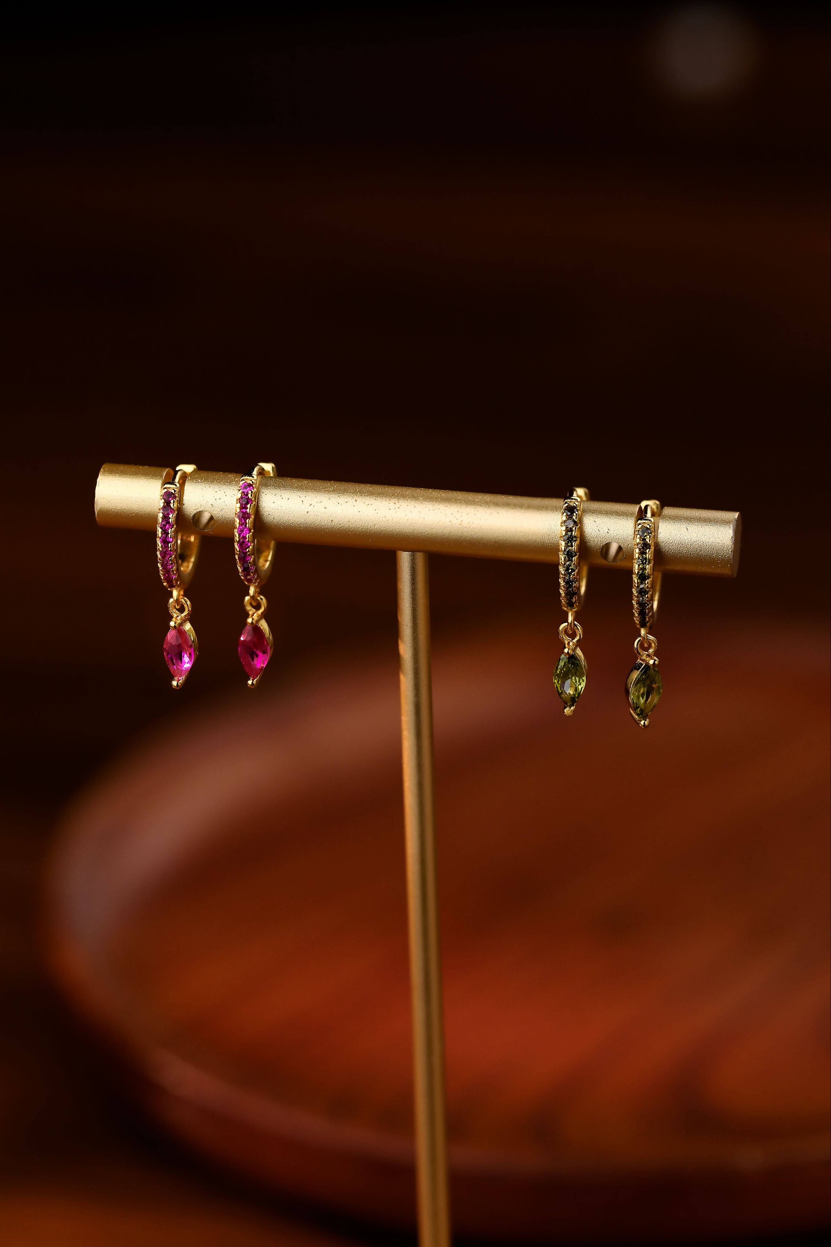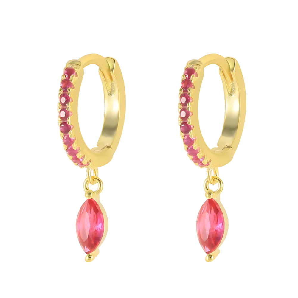 Hoop Ohrringe Gold Zirkonia Rot Tropfen Anhänger