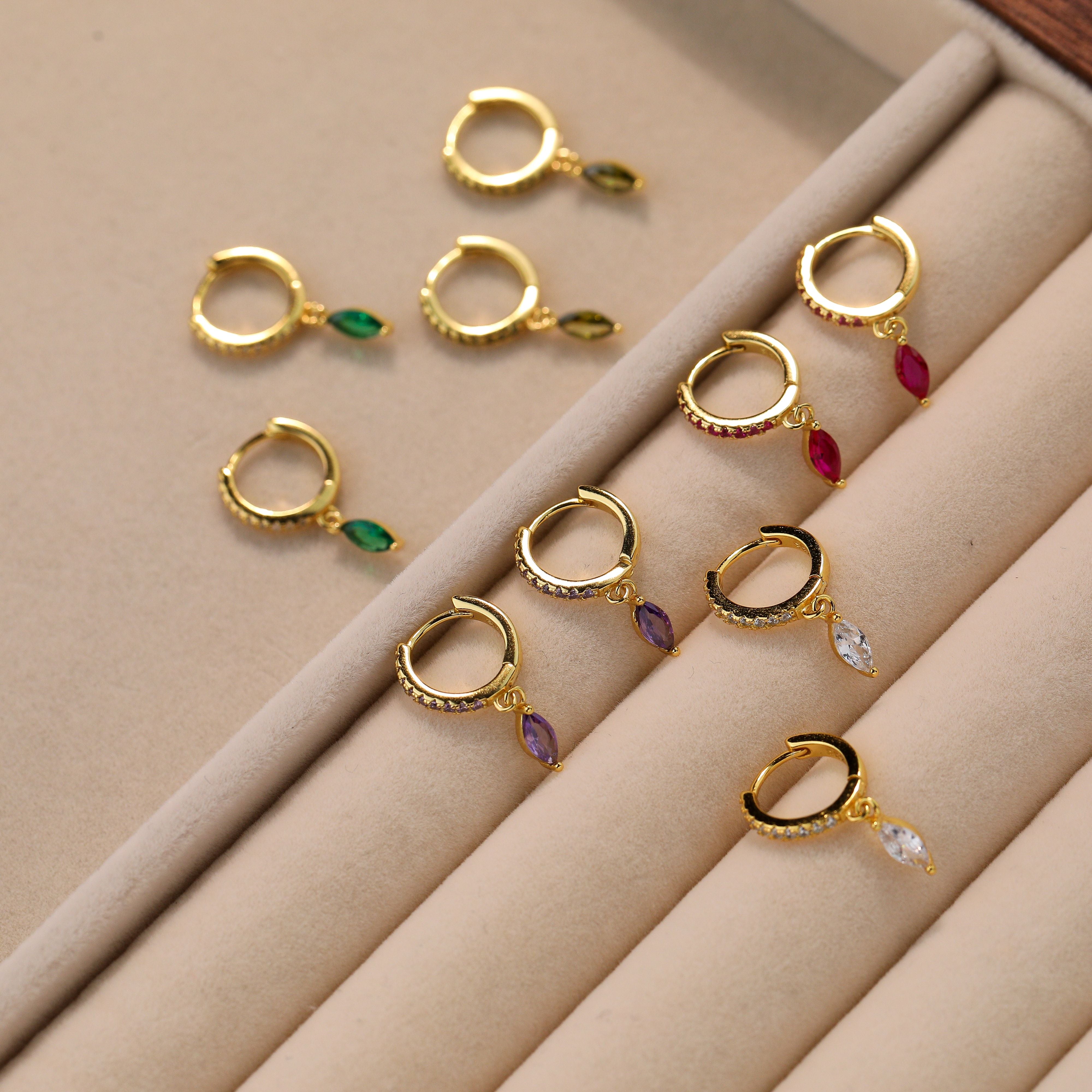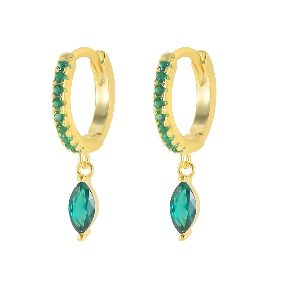 Hoop Ohrringe Gold Zirkonia Smaragd Grün Tropfen Anhänger